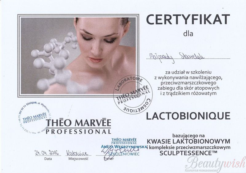 Szkolenie z wykonywania nawiżającego, przeciwzmarszczkowego zabiegudla skór atopowych i z trądzikiem różowatym Lactobionique