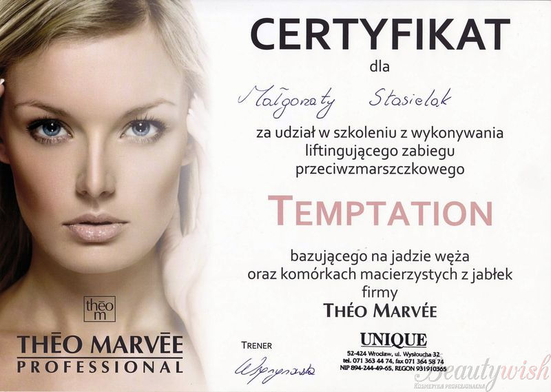 Szkolenie z wykonywania liftingującego zabiegu przeciwzmarszczkowegoTemptationbazującego na jadzie węża oraz komórkach macierzystych z jabłek